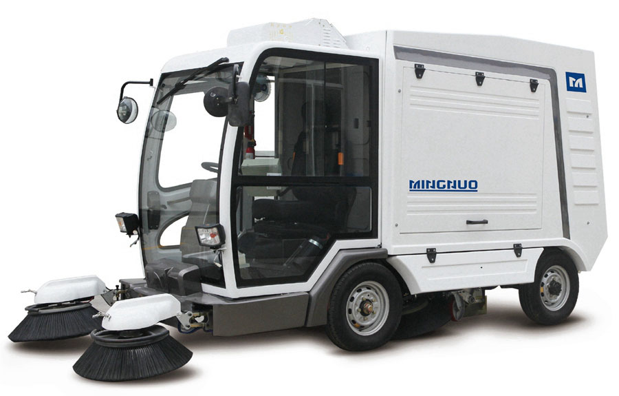 手推式掃路車:手推式掃路車是一種小型掃路車。清掃作業(yè)時操作人員在掃路車后面用手推動掃路車前進(jìn)。這種掃路車清掃寬度一般在800–1200mm之間,且大多在lOOOmm以下,平均清掃速度一般為3 km/h,較高清掃速度一般為Skm/h。由于手推式掃路車操作時,操作人員有一定的勞動強(qiáng)度,所以它僅適用于路面平整區(qū)域的清掃,如室內(nèi)、廣場等。